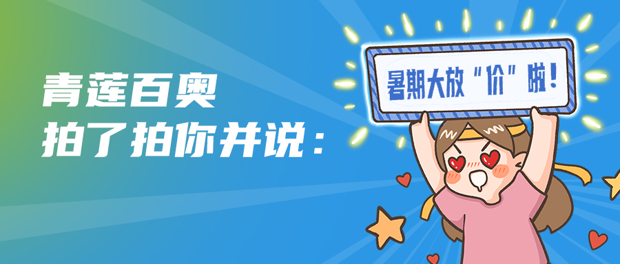青蓮百奧拍了拍你并說:暑期大放“價”啦,還有不知道的嗎?
