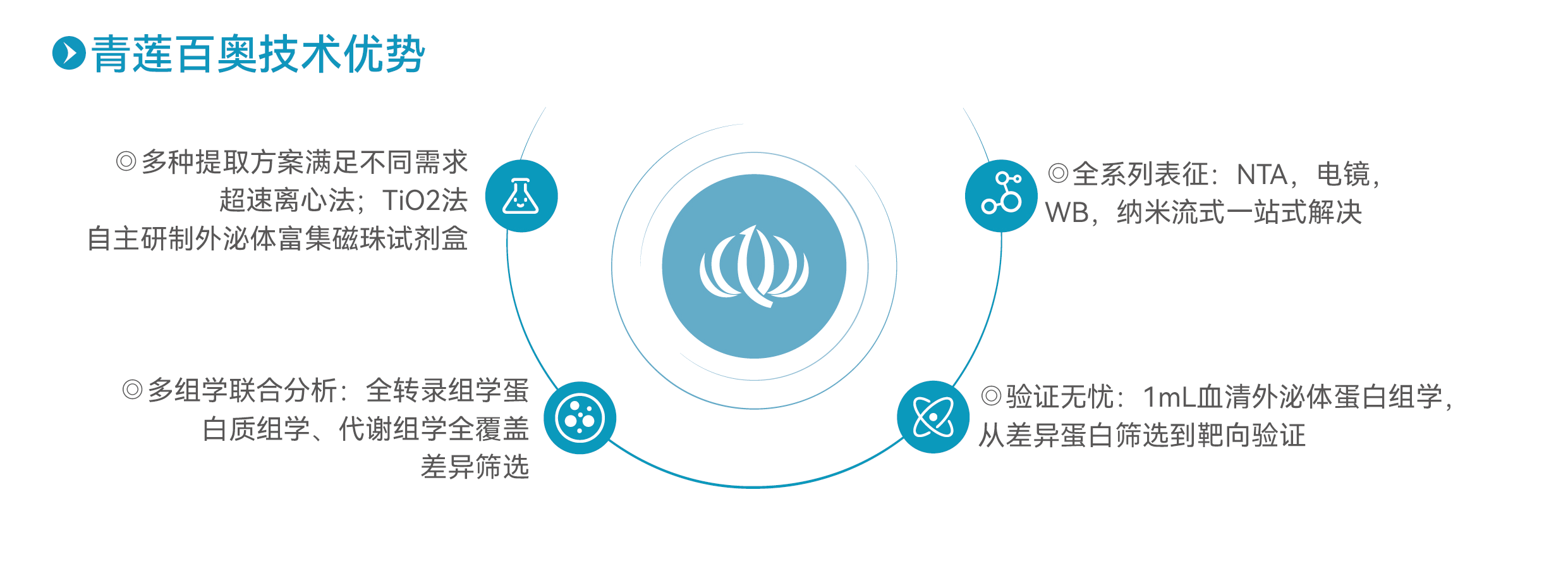 青蓮百奧結(jié)合自主研發(fā)的外泌體富集磁珠試劑盒,全面的外泌體表征方法,高通量高分辨率質(zhì)譜儀檢測蛋白質(zhì)組學(xué)和高級標志物篩選方法,提供外泌體的一站式檢測服務(wù)。助力外泌體蛋白質(zhì)組學(xué)與臨床實踐的結(jié)合,為疾病提供精準診療策略。